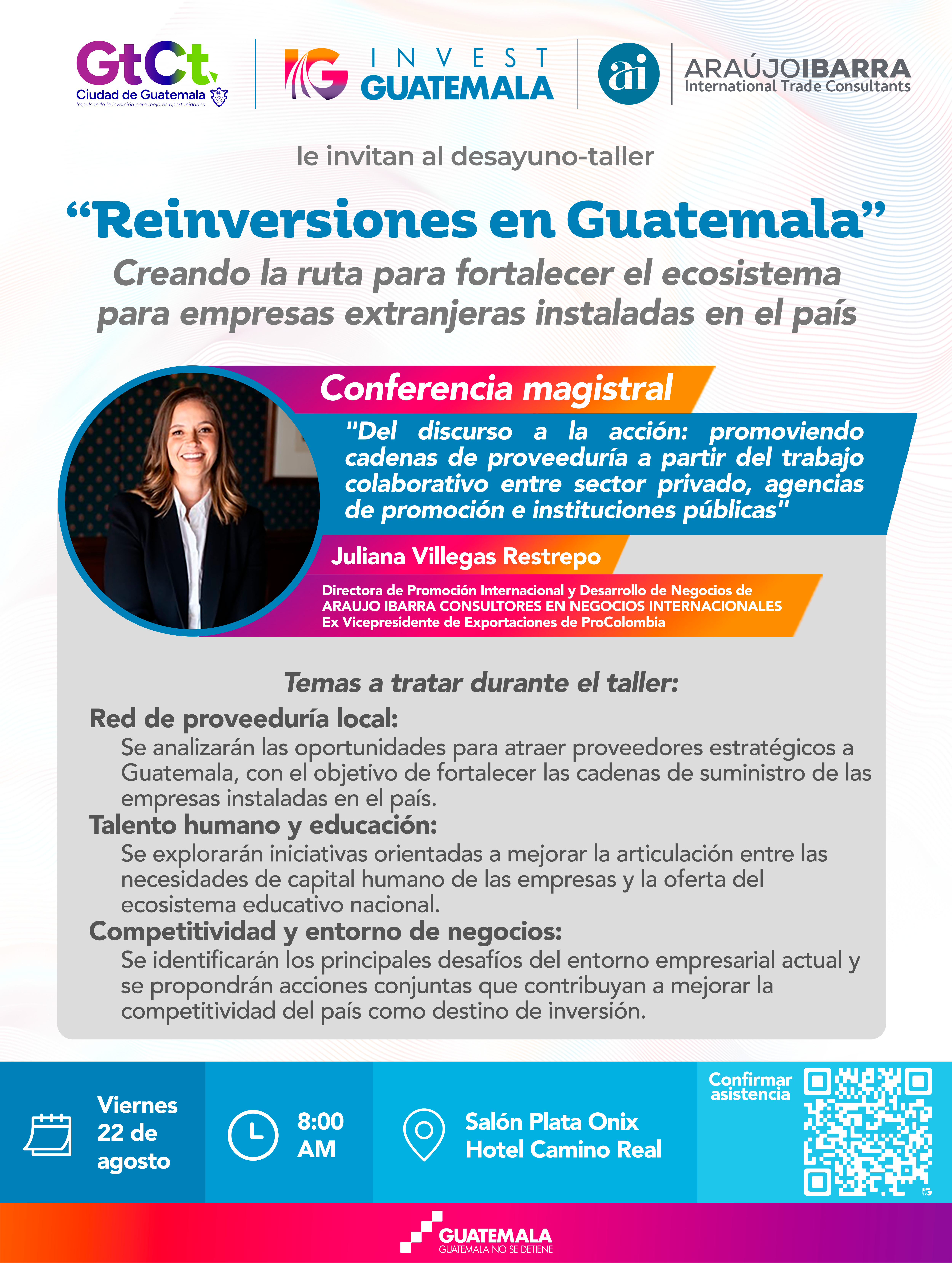 📅 Viernes 22 de agosto | 🕗 8:00 a.m. | 📍 Hotel Camino Real – Salón Plata Ónix